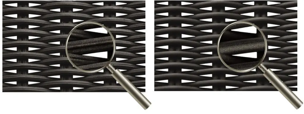 Sie haben gehört, dass Weichmacher der Grund für das Brechen der Geflechte ist? Weichmacher sind ein notwendiger Bestandteil eines flexiblen Kunststoffes. Sie sind in ALLEN Kunststoff-Flechtmaterialien enthalten. Erst die Weichmacher bewirken, dass Kunststoffe flexibel, geschmeidig und elastisch sind. Viele alte Geflechte verlieren durch z.B UV-Einstrahlung ihre elastischen Eigenschaften und werden brüchig. Somit ist der Grund für das Brechen von Geflechten das Nichtvorhandensein dieser Weichmacher.